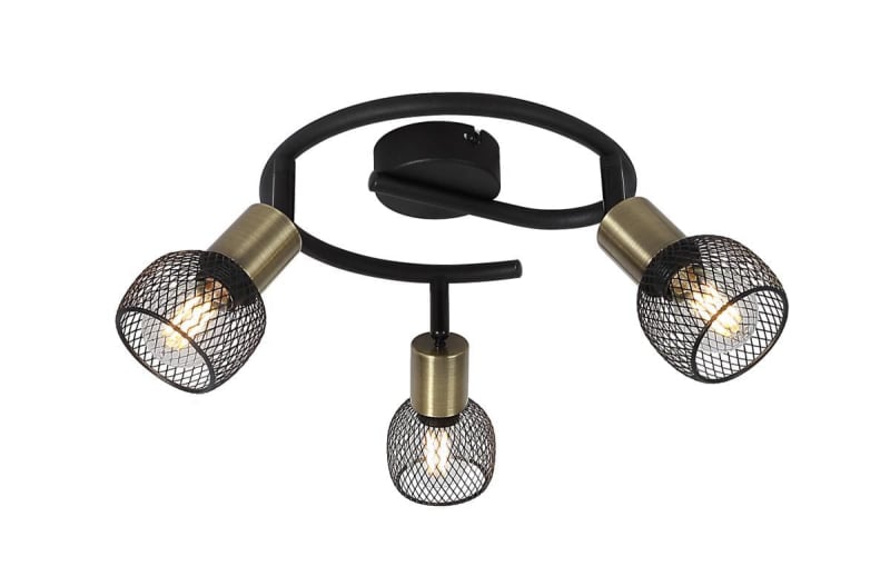 Bring a bold industrial edge to your space with this stylish 3-light ceiling fitting. Featuring mesh-style metal shades and an eye-catching black and antique brass finish, itβs perfect for modern, vintage, or loft-inspired interiors. Adjustable heads allow you to direct light where you need it most β ideal for living rooms, kitchens, or dining areas.