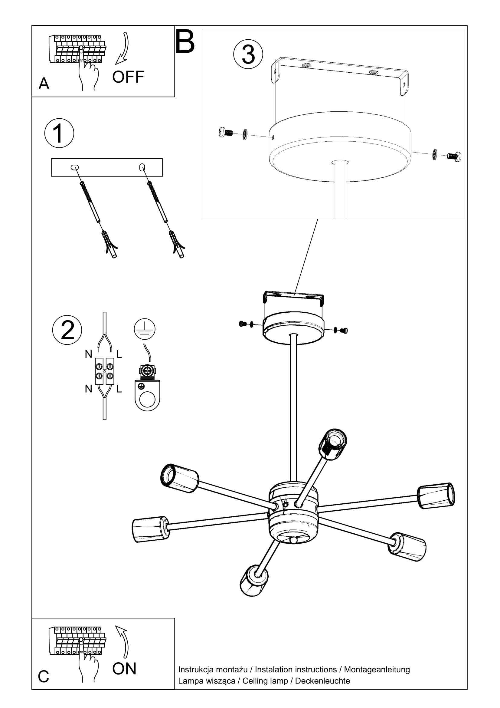 Light Bulb(s) Required: 6xE27- 40W Max Halogen/12W Max LED
